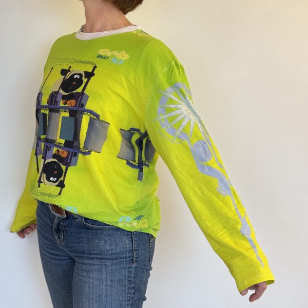 - I made this by drawing my favourite record album cover and sending it to print online. The band is the Orb and it is the first Bach’s I hear on John Peel’s radio 1 show. I found something wonderful to listen to but also when I look back, I see I found my tribe.I made it to go to an Orb gig with my best friend who I have known since that time. The evening was fantastic and lots of people commented on my top (mostly because I found it glowed under UV!)I think the freedom to put whatever you want on a tee shirt is an extraordinary power to find more of your tribe. Sharing cultural reference points, however obscure, can start conversations and make you feel proud!Becca, Winchester