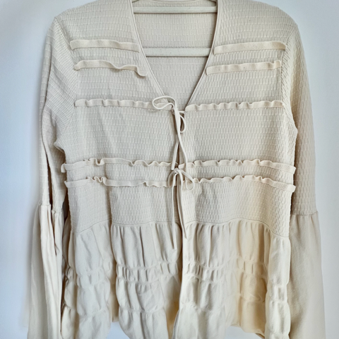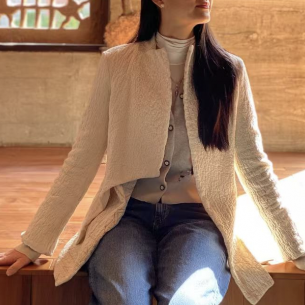 - As someone who has interviewed quite a few women about their wardrobes, I found it surprisingly difficult to answer the question when asked about my own favorite piece of clothing. The reasons we love certain garments vary, and the motivations for keeping them in our wardrobe over time can be just as diverse.Still, I dug through my wardrobe and my thoughts, and eventually landed on this cardigan-like jacket. It’s very feminine, with plenty of decorative edging—but not in an overly fussy way. It’s completely different from most of the other styles I own. I’ve worn it for at least 7 or 8 years, and I think I’ll keep loving it because it doesn’t really follow fashion trends, and it works with a wide range of outfits.You might not imagine where I found it—or perhaps I should say, rescued it. I came across this piece in a garment factory in Zhongshan, Guangdong Province, China, just before the factory was about to be relocated. Inside were piles and piles of clothes, like little mountains. Most of them were brand new but had been overproduced, rejected due to small defects, or were leftover samples. These clothes were soon to be bundled up—each bundle weighing dozens of kilos—and sent off, likely to be sold off cheaply in underdeveloped areas.I had no hesitation when I found this one. The moment I saw it, I knew it was mine. I don’t quite remember, but it probably cost around £3. Still, friends often tell me it looks like a designer piece. I think what makes me love it so much is that it affirms my ability to choose well—I know exactly what suits my style, my work environment, and more importantly, my body. By that I mean my shape. The piece has a certain weight and structure to it—it drapes well and gives a clear silhouette. I’m genuinely happy I saved it from that overwhelming mountain of clothing.To this day, I still haven’t figured out what its “flaw” was—was it a manufacturing issue, a problem with the fabric, or perhaps this slightly muted off-white color?Tianjiao, Epsom, Surrey