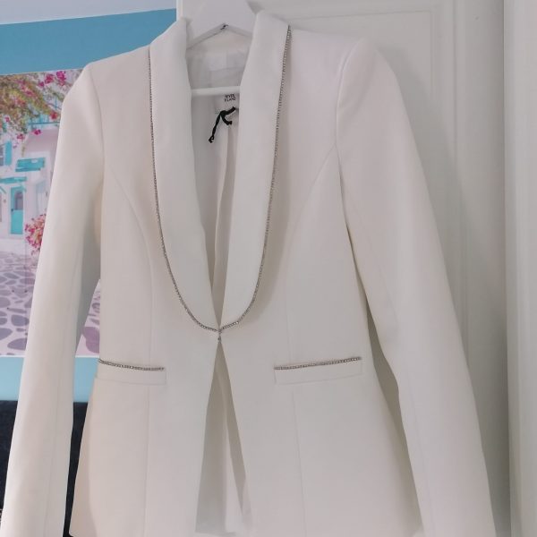 - I found this brand new blazer from River Island, with all tags, plastic cover and a fresh smell. This happened when I started charity shopping and found it in between old clothes. I bought it for 15£ but worth 70£. I felt very happy as I tend to wear formal outfits, quite often. I love it so much, white and shiny with a touch of elegance and modesty.Maria, Leicester